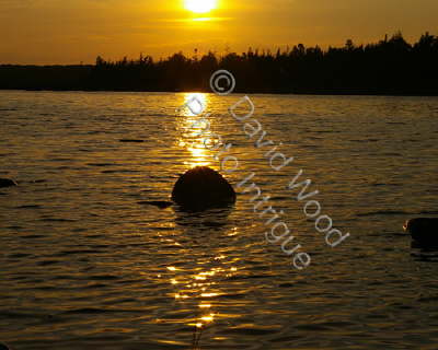 ROCK IN WATER AT SUNSET